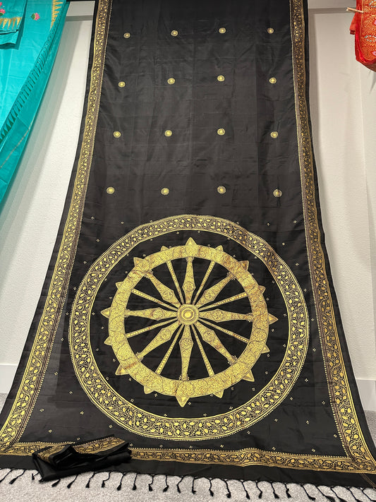 Black Pure Silk Pattachitra Saree with Konark chakra