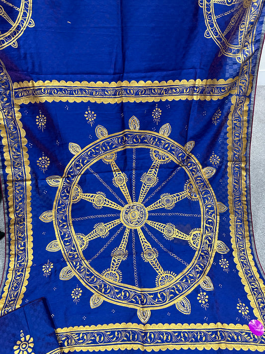 Navy Blue Pattachitra Saree with Golden Konark Wheel