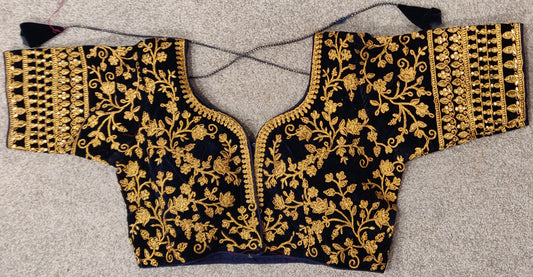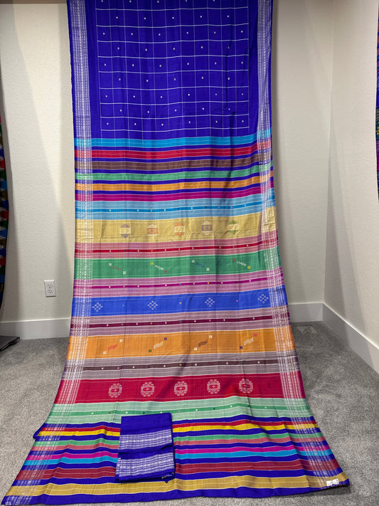 Berhampuri DoublePalla Royal Blue with Checks on the Body