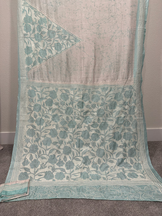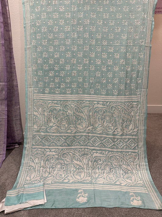 Baatik kaantha - Pastel Blue and White diagonal shade