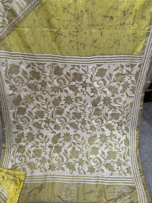 Kaantha Stitch Saree - Tusaar with Yellow thread work