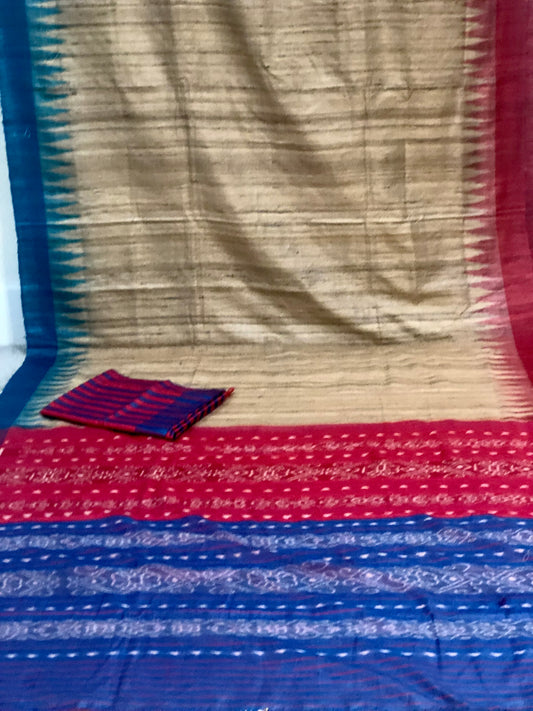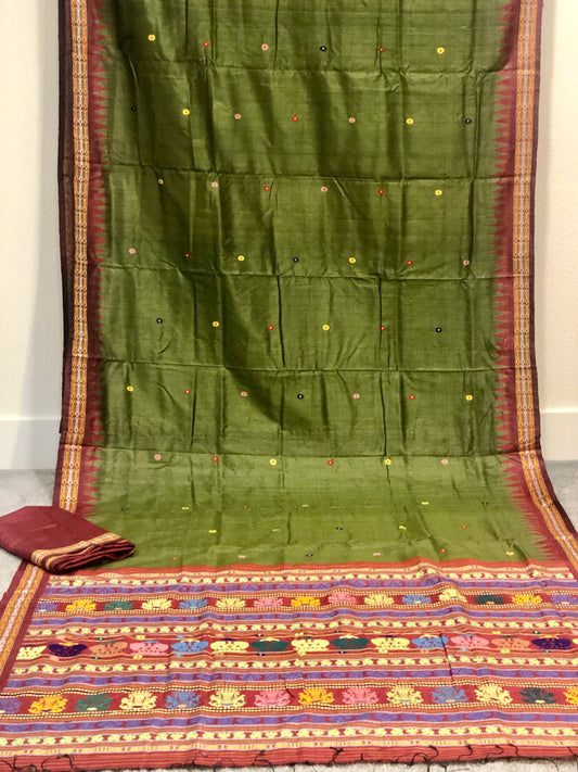 Ganjam Bomkai on Olive Green Tussar with brick red aanchal