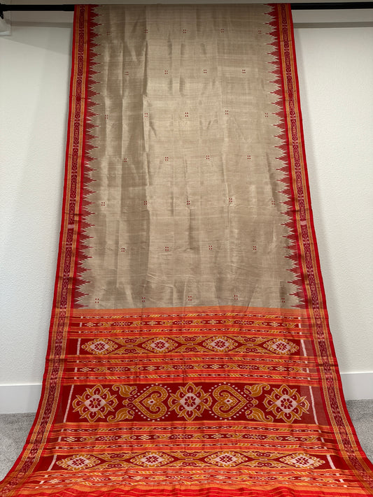 Odisha Ikkat metallic gray with red temple border