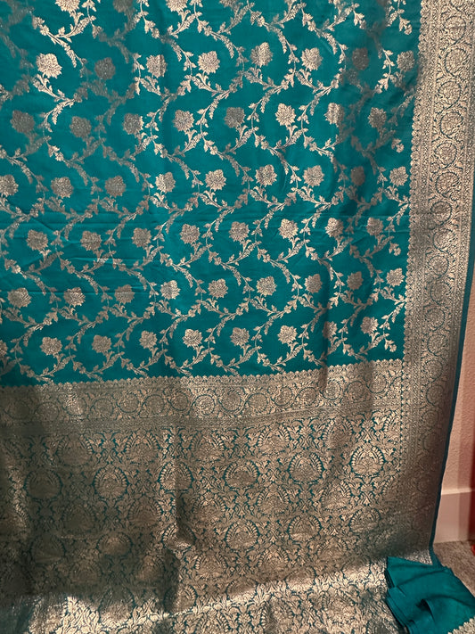 Benarasi Saree Semi Katan - Turquoise Blue