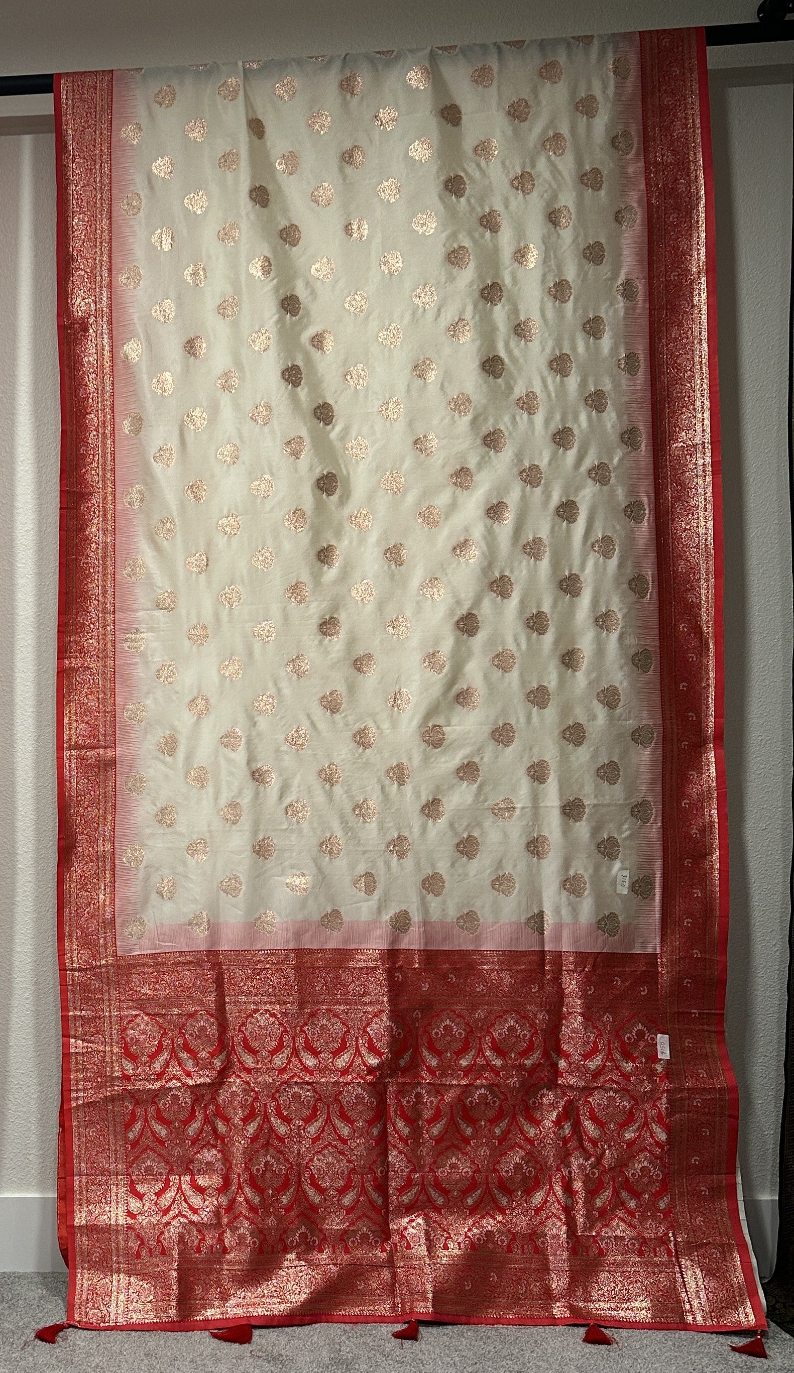 Benarasi Saree - Cream with red border